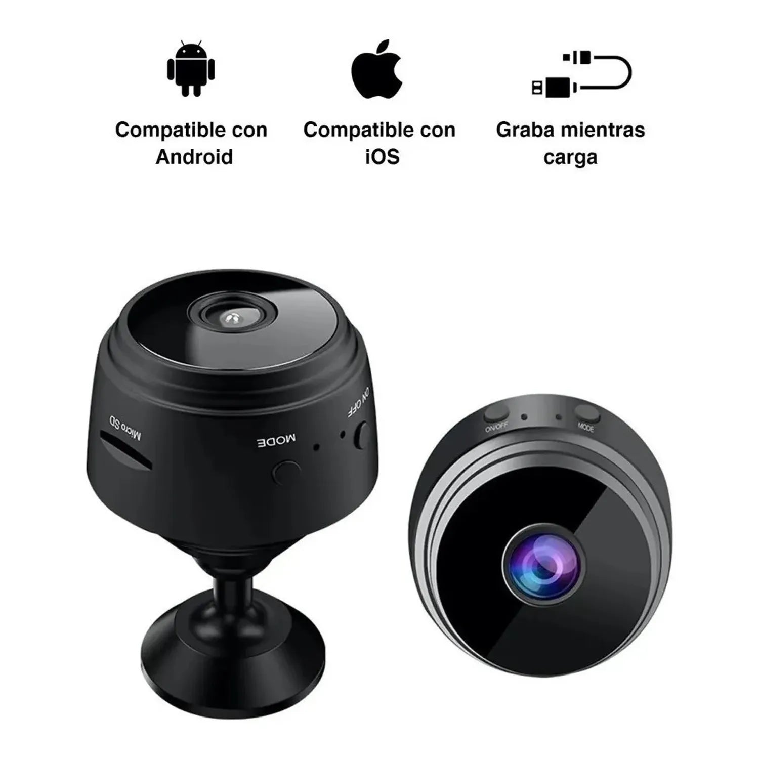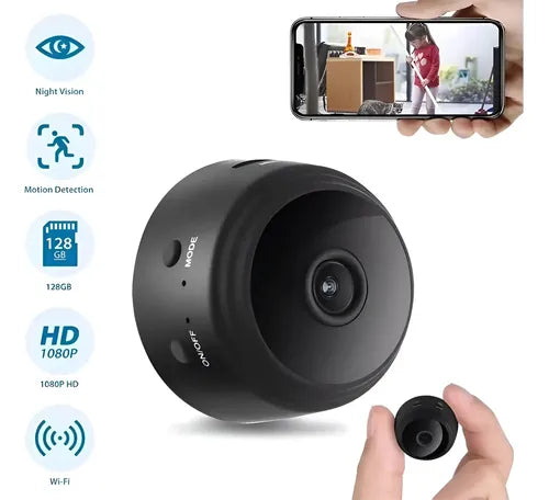 Cámara espía IP con micrófono 24/7Conexión WiFi (sólo 2,4 GHZ) para acceso remoto, permite transmitir vídeos a través de una aplicación de smartphone o tableta. Ideal para monitorear espacios como el hogar u oficina tanto de día como de noche. Función: soporte WiFi, vídeo, cámara, grabación en bucle, detección de movimiento, visualización de tiempo. Control inalámbrico y remoto: aplicación intuitiva para personalizar configuraciones según preferencias: Alertas por detección de movimiento, compartir, establecer horarios, grabación en bucle, reproducción remota, entre otros. Compatible con tarjetas micro SD de hasta 32 GB. (no incluida)Fácil de usar: incluye soporte y pestaña magnética giratoria de 360°. Se puede montar en superficies metálicas y no metálicas para monitorear discretamente, como en esquinas de estantes, puertas, refrigeradores y más. Permite ajustar el ángulo deseado sin necesidad de instalación compleja. Visualización oculta: diseño compacto como un micro redondo de 1.0 in con luz indicadora de funcionamiento y luz infrarroja no visibles durante el día o la noche.720P, con funciones de vídeo, cámara, grabación en bucle, detección de movimiento y visualización de tiempo.